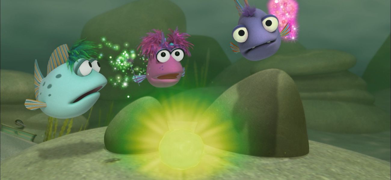While looking at the seabed through the aquatic table, Poilou drops his collection of dirt balls into the water. To retrieve them, students must use all five senses.