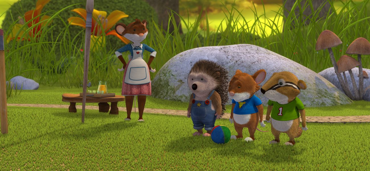 Tip has just finished playing in his room with Jody and Henry. And now his room looks like a battlefield: toys everywhere. Mom tells him to tidy up before he goes out, but Tip doesn't feel like it and will tidy them up later, because now they want to go outside and play ball. As Mum leaves, he disobeys and the puppies play ball in the garden.