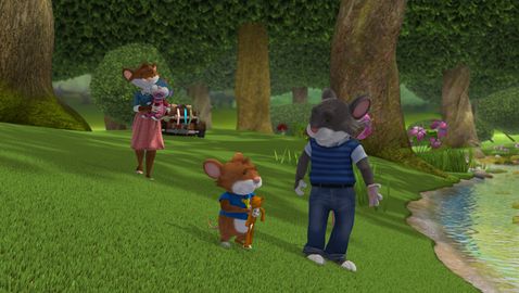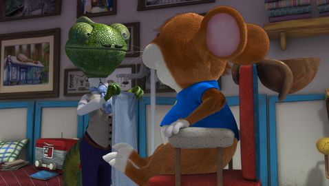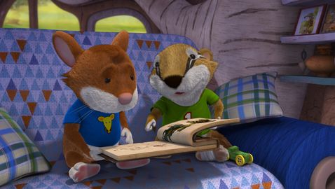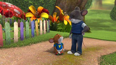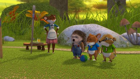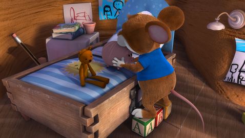 Tip has just finished playing in his room with Jody and Henry. And now his room looks like a battlefield: toys everywhere. Mom tells him to tidy up before he goes out, but Tip doesn't feel like it and will tidy them up later, because now they want to go outside and play ball. As Mum leaves, he disobeys and the puppies play ball in the garden.