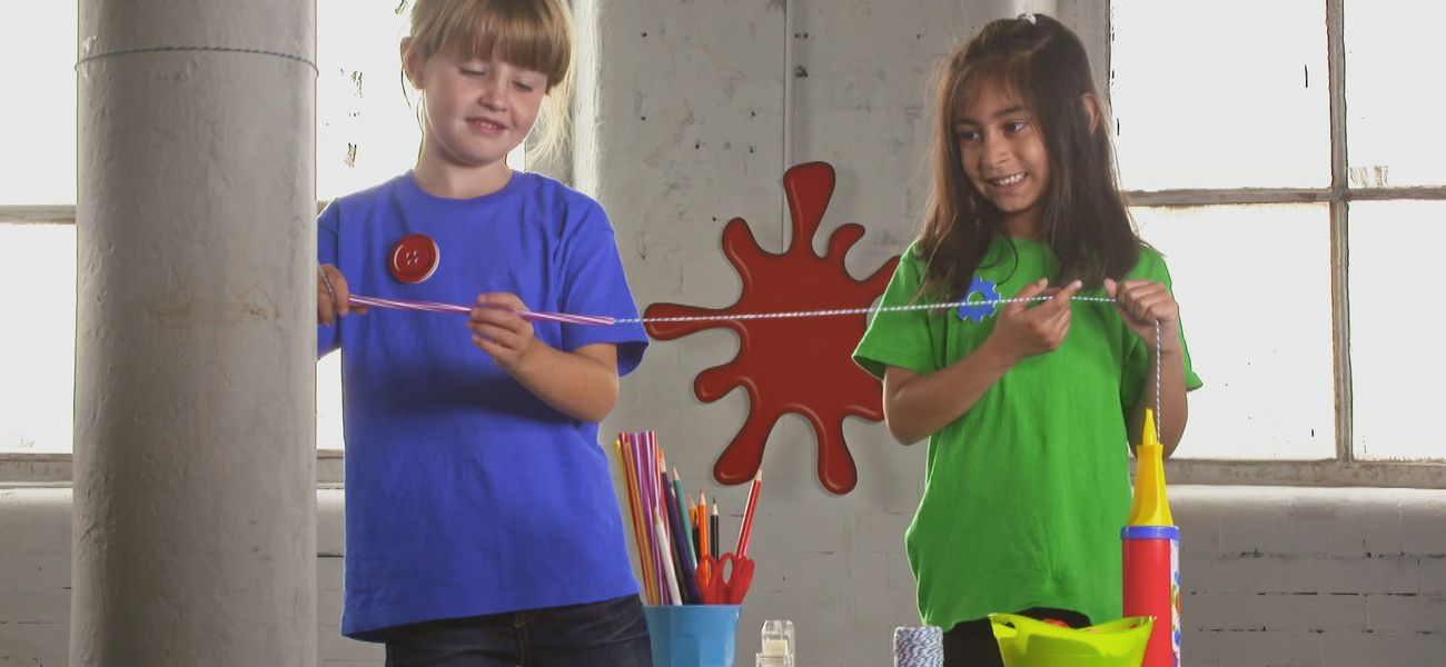 Bitz and Bob remember one of their adventures where they had to make a zip line with an inflatable balloon to send an invitation to Biseau. In a studio, children try to recreate a similar experiment and discover the phenomenon of propulsion. They race with two zip lines to verify the factors that have an influence on the propulsion force.
