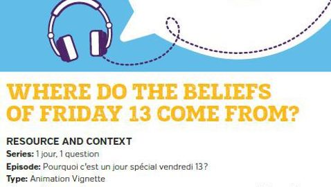 For FSL teachers, this pedagogical sheet “Where Do the Beliefs of Friday 13 Come From?” supports the vignette ”Pourquoi c’est un jour spécial Vendredi 13?” from the series “1 jour, 1 question”. FSL Overall Expectation: A3 - Intercultural Understanding.