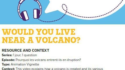 For FSL teachers, this pedagogical sheet “Would You Live Near A Volcano?” supports the vignette ”Pourquoi les volcans entrent-ils en éruption?” from the series “1 jour, 1 question”. FSL Overall Expectation: A1 - Listening to understand.