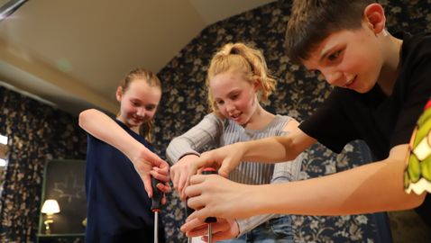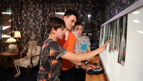 Professor Kloridric has struck again! It's Alexandre, Élouan and Vincent's turn to be trapped in his terrifying house. They must escape as quickly as possible to avoid becoming guinea pigs for his terrible experiments! To do this, in the time allotted to them, the trio must explore, in detail, three different rooms: the study, the basement and the laboratory. In each of these rooms, the professor has prepared a series of riddles on the theme of mechanical science. Solving each riddle will enable them to find one of the three numbers in the ultimate combination. Will our team manage to escape, or will they be trapped in the house forever?