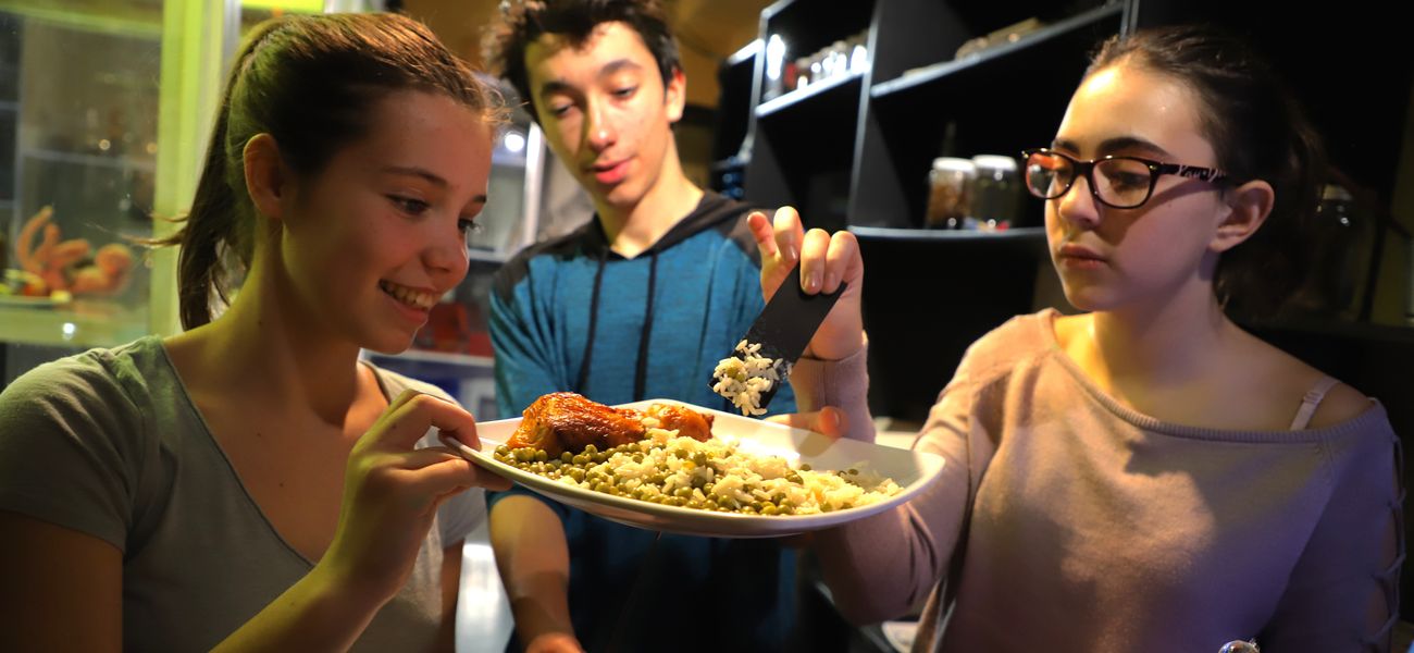Professor Kloridric has struck again! It's Antoine, Ornella and Emma's turn to be trapped in his terrifying house. They must escape as quickly as possible to avoid becoming guinea pigs for his terrible experiments! To do this, in the time allotted to them, the trio must explore, in detail, three different rooms: the study, the basement and the laboratory. In each of these rooms, the professor has prepared a series of food-themed riddles. Solving each riddle will enable them to find one of the three numbers in the ultimate combination. Will our team manage to escape, or will they be trapped in the house forever?