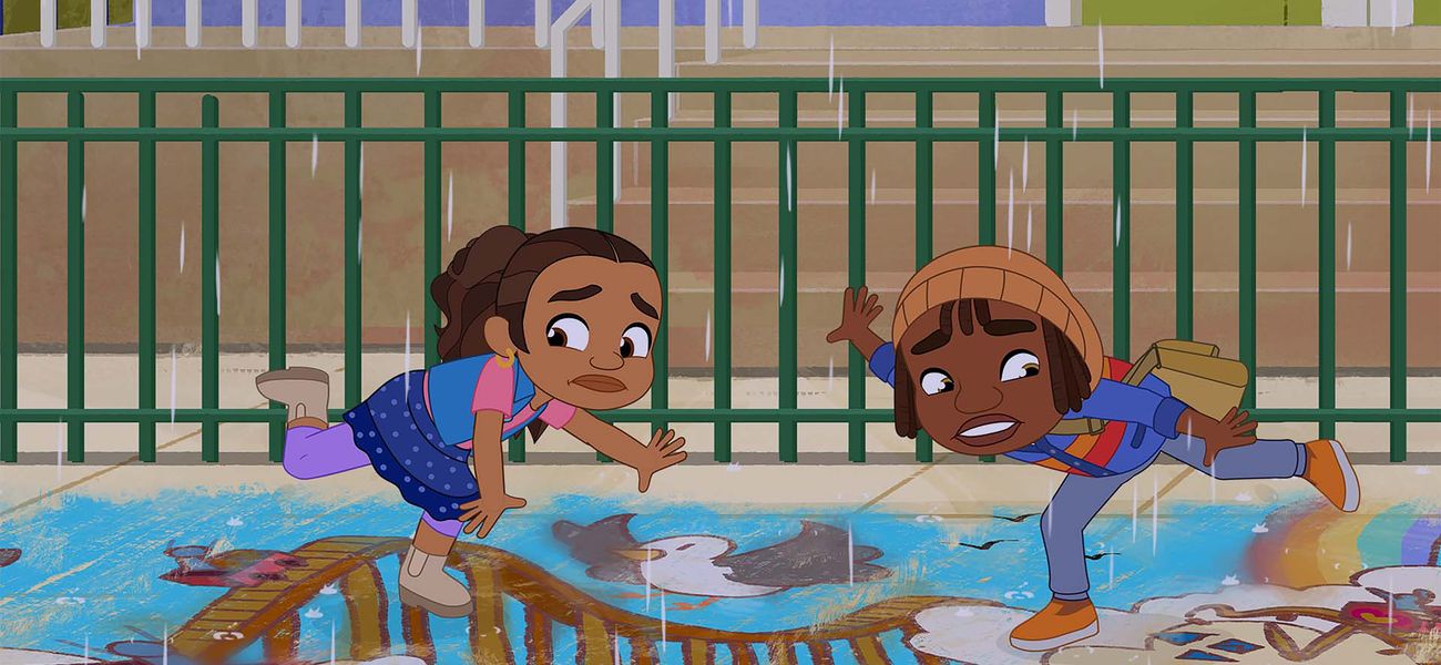 André has drawn a chalk mural on the sidewalk from his apartment building to Alma's house. He calls it Block Chalk, and everyone is invited to come and see his work. But a heavy rain washes away his hard work! Will Alma find a way to help André redo his work before everyone arrives?
