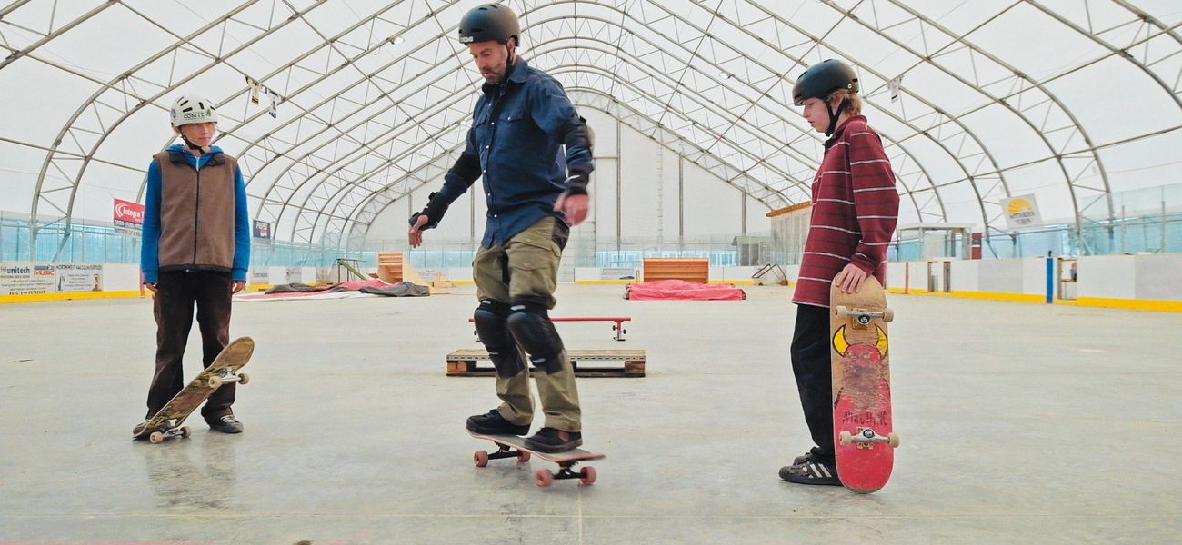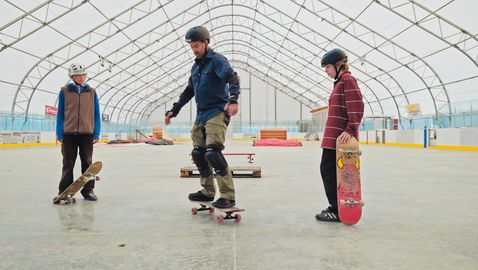 Isaac and Louis, 15, are two best friends with a passion for skateboarding. They're teaching skateboarding tricks to adventurer Simon D'amours, who's not nearly as skilled as they are, but who's really enjoying discovering the sport! Benji also skateboards with them and teaches them breakdancing. They all help each other out and persevere.
