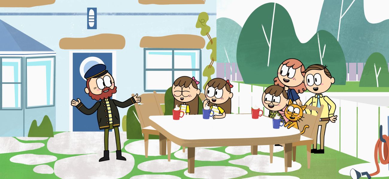 The featured word in this episode is: *grincheux*. Christophe and Scapin's flying disc falls into Mr. Grumpy's yard, and he lets Scapin into his house. Christophe finds a way to get in as well to rescue him. He finally realizes that Mr. Grumpy is not so bad!
