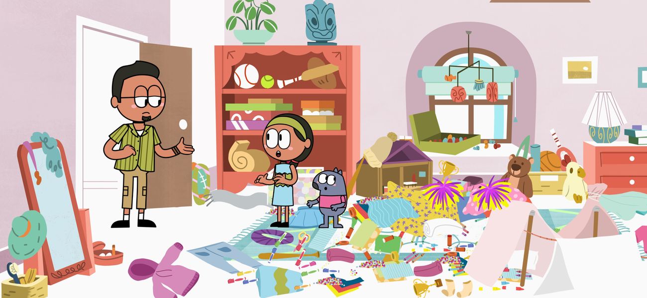 The featured word in this episode is: *coopération*. Océane is supposed to go play with Romy and Socrates, but Papa asks them to clean their room first. Socrates teaches Romy how to cooperate to make the work easier and the result is fantastic!