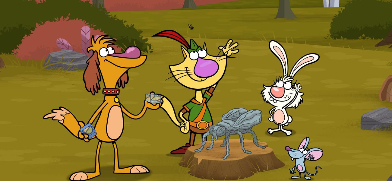 Félibert and his friends use a magnifying glass to take a closer look at stones, rocks and living species.
