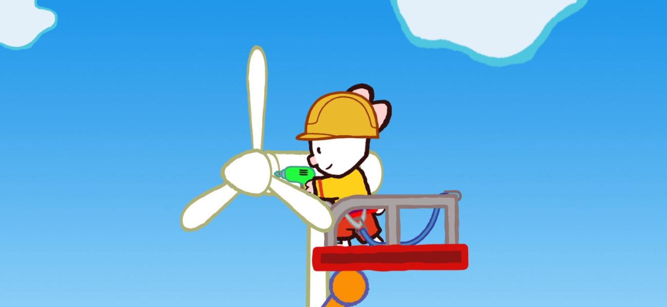 Didou and Yoko are walking in a wood where a very strong wind blows. The two friends meet a nice bear who offers them shelter in his cabin. The only problem: there is no electricity in his cabin. Didou then has an idea: to build a wind turbine.