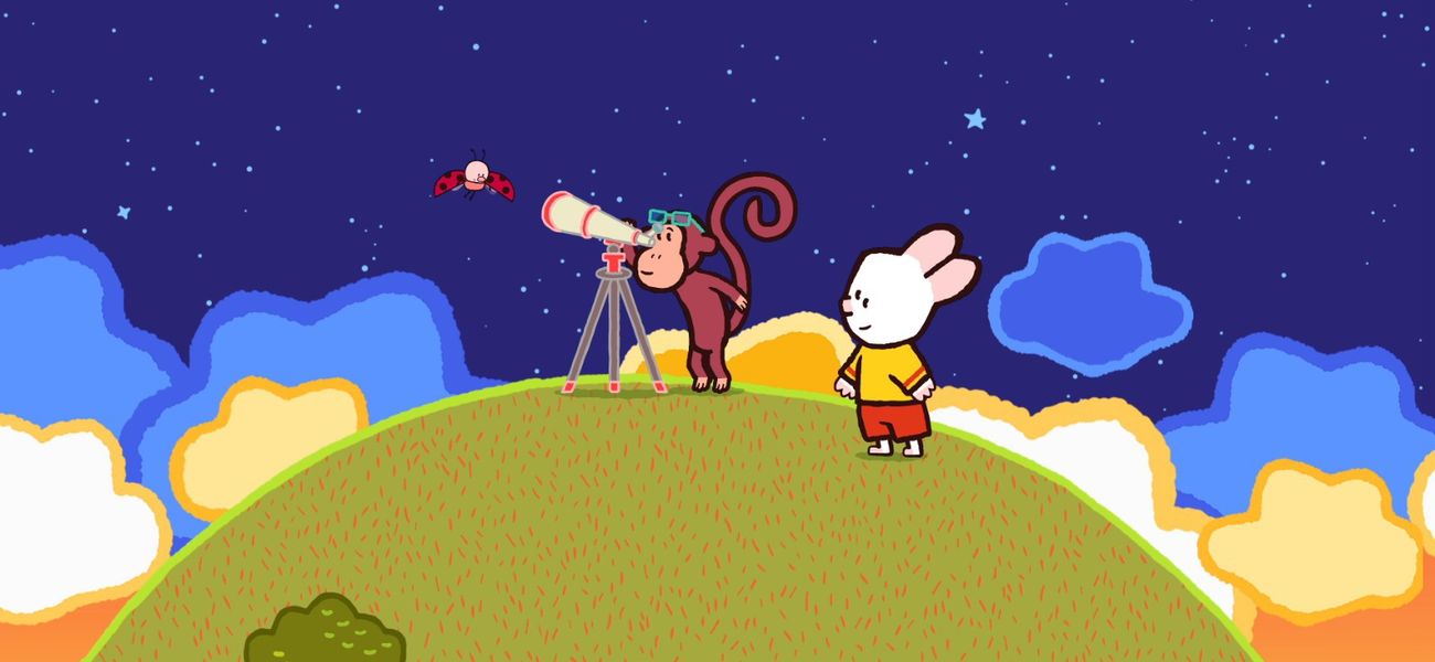 Didou and Yoko go to the top of the hill to admire the full moon. They meet Mr. Monkey who explains to them that his dream is to go to the moon. Didou then has an idea: build a rocket to allow Mr. Monkey to go to the moon!
