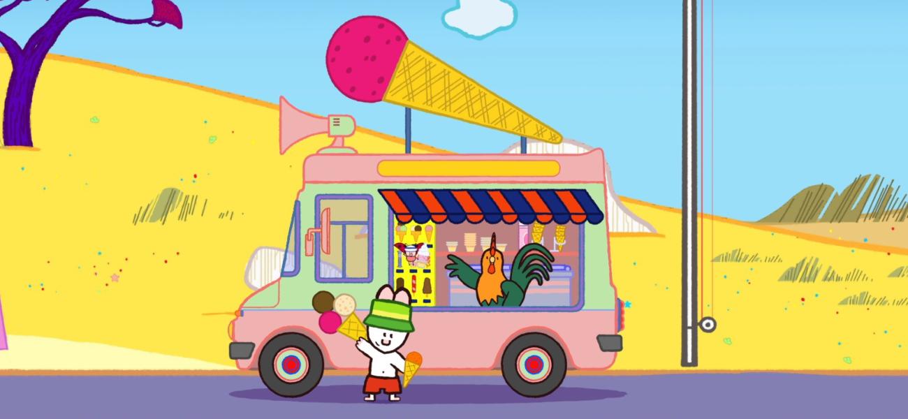 Didou and Yoko are at the beach. They want to buy an ice cream when Mr. Rooster passes by with his ice cream cart, but they are all melted because it is hot. Didou is going to build an ice cream truck so that the ice creams of Mr. Rooster stay fresh and don't melt anymore.