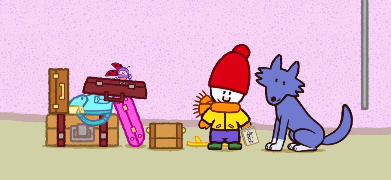 Didou and Yoko go for a snowshoeing trip. They meet Mr. Wolf who has to start his job as a forest ranger, but he doesn't know how to bring all his luggage to his house. Didou builds a sled to carry all of Mr. Wolf's luggage at once.