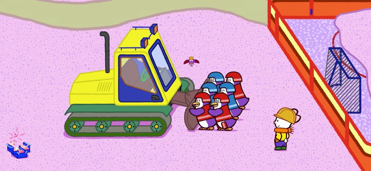 Didou and Yoko are watching an ice hockey game. But when snow falls on the rink, the game has to stop. Didou will build a snow plow to solve the problem.