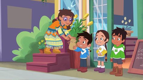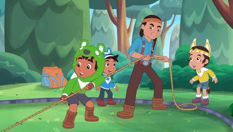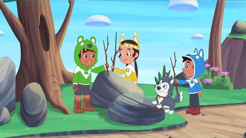Bruno is competing in a basketball shooting contest with his father, Chief Madwe, so he must learn to shoot the ball, and fast! When his friends lose the ball, Bruno uses his bear strength to save the day, then impresses his dad with a combination of lacrosse and basketball skills. So Bruno used the skills he had already mastered to discover new ones.