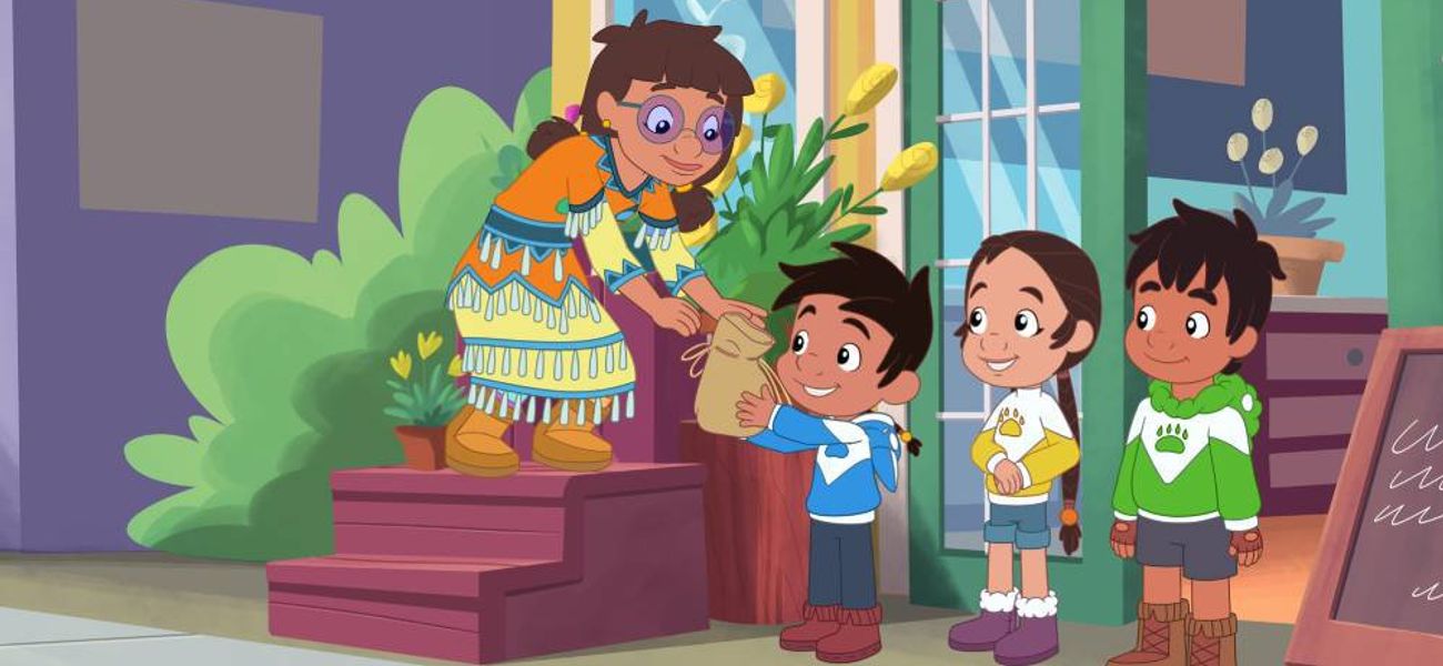 When Theo, Nina and Bruno participate in traditional summer solstice celebrations, they discover that the longest day of the year is also an opportunity to be super rescuers. A thirsty baby moose, missing dress bells, a lost drum stick and a mishap with a miniature glider are just some of the problems they face as a team using the skills of their totem animals. In the process, our heroes learn six of the Seven Sacred Teachings and finally unravel the mystery of the seventh teaching, that of the Turtle, and celebrate their special day.