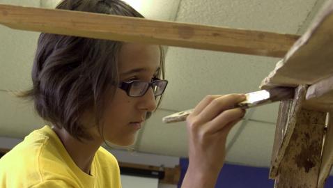 Cléo explique son processus de création. Elle aime manipuler les textures, combiner des couleurs et réfléchir sur l'exploration de l'espace.