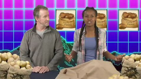 Annie Guglia a placé trois objets importants pour son métier d'athlète de planche à roulettes professionnelle dans la poche à patates. Est-ce que Seana sera capable de les identifier?