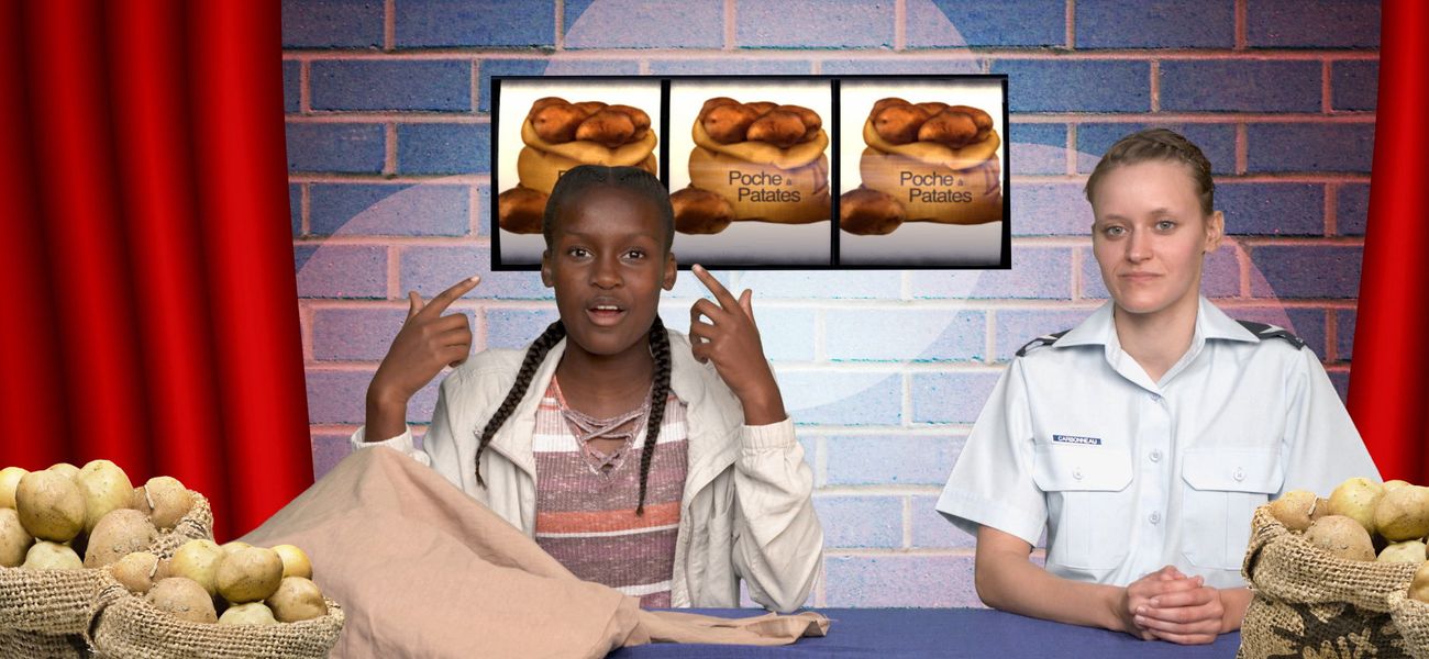 Il y a plusieurs objets caractéristiques d'un métier dans une poche à patates. Les jeunes animateurs doivent deviner ce qu'ils sont et à quoi ils servent. On passe ensuite en revue chaque objet en expliquant concrètement leur fonction. Dans cet épisode, la musicienne Sarah Carbonneau a apporté à Seana, des objets qui représentent le mieux son métier.