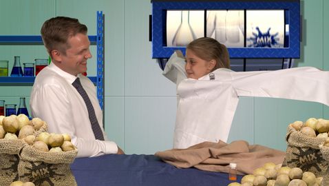 Il y a plusieurs objets caractéristiques d'un métier dans une poche à patates. Les jeunes animateurs doivent deviner ce qu'ils sont et à quoi ils servent. On passe ensuite en revue chaque objet en expliquant concrètement leur fonction. Dans cet épisode, la technicienne de simulation, Mélanie Burke a apporté à Dalí, des objets qui représentent le mieux son métier.