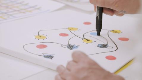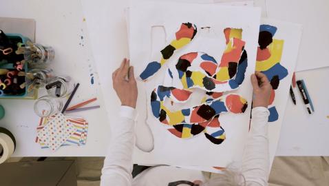 En froissant le papier, Hervé Tullet joue avec le temps et les formes et leur donne une histoire.