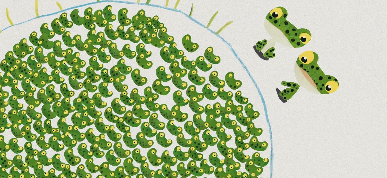 Les amis lisent l'histoire des 999 têtards.