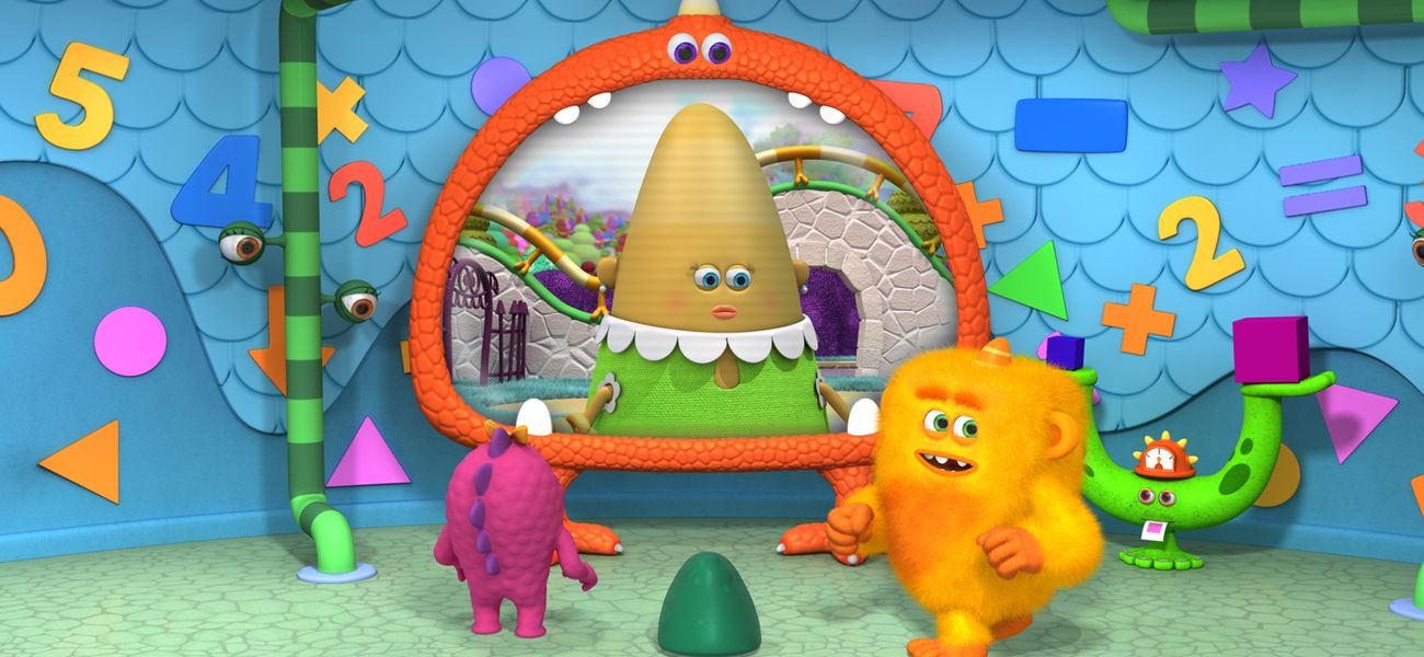 Concept abordé : taille. La maison de Mademoiselle Cornemonstre a disparu. Mais où peut-elle bien être? Les monstres-maths ont pour mission de la retrouver, mais ils devront d'abord apprendre à différencier les tailles petites, moyennes et grandes.