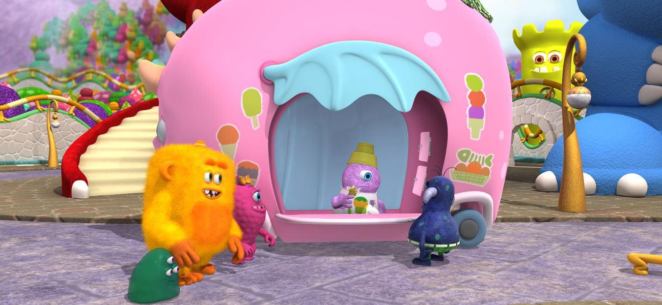 Concept abordé : tout (dénombrement). Monsieur le Monstre bave glacée a beaucoup de difficulté à calculer le nombre de coupes de bave glacée qu'il vend à chacun de ses clients. Monsieur le Monstre Tout-grognon est très contrarié, car il a commandé trois coupes de bave glacée, mais Monsieur le Monstre bave glacée lui en a donné qu'une seule. Avec l'aide du mot mathématique « tout », l'Escouade des monstres-maths a compris que le dernier chiffre que l'on compte est celui qui désigne combien il y a de coupes de bave glacée en tout. De cette façon, tous ont pu recevoir le nombre de coupes de bave glacée qu'ils avaient commandées. Mmm... Les monstres-maths ont trouvé la solution!