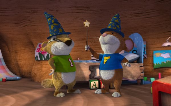 Tip et sa maman rendent visite à Jody et Marylou. Les souriceaux portant des chapeaux coniques bleus prétendent être des magiciens, sautant et dansant pour jeter un sort.