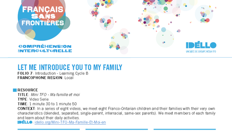 À l’intention des enseignantes et enseignants de français langue seconde, ce cycle d'apprentissage B accompagne la série 'Mini TFO - Ma famille et moi' Attente curriculum FLS : A3, B3, C3, D3 - Intercultural Understanding