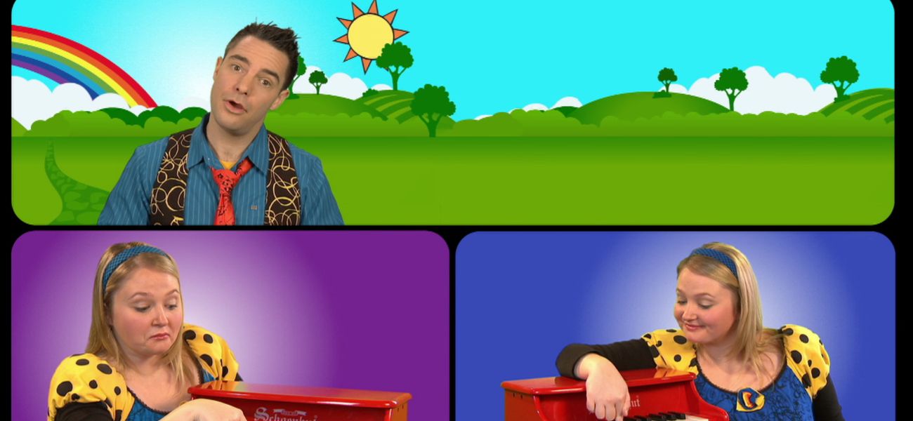 Louis et Josée présentent des chansons connues et simples. Louis chante : Au clair de la lune.