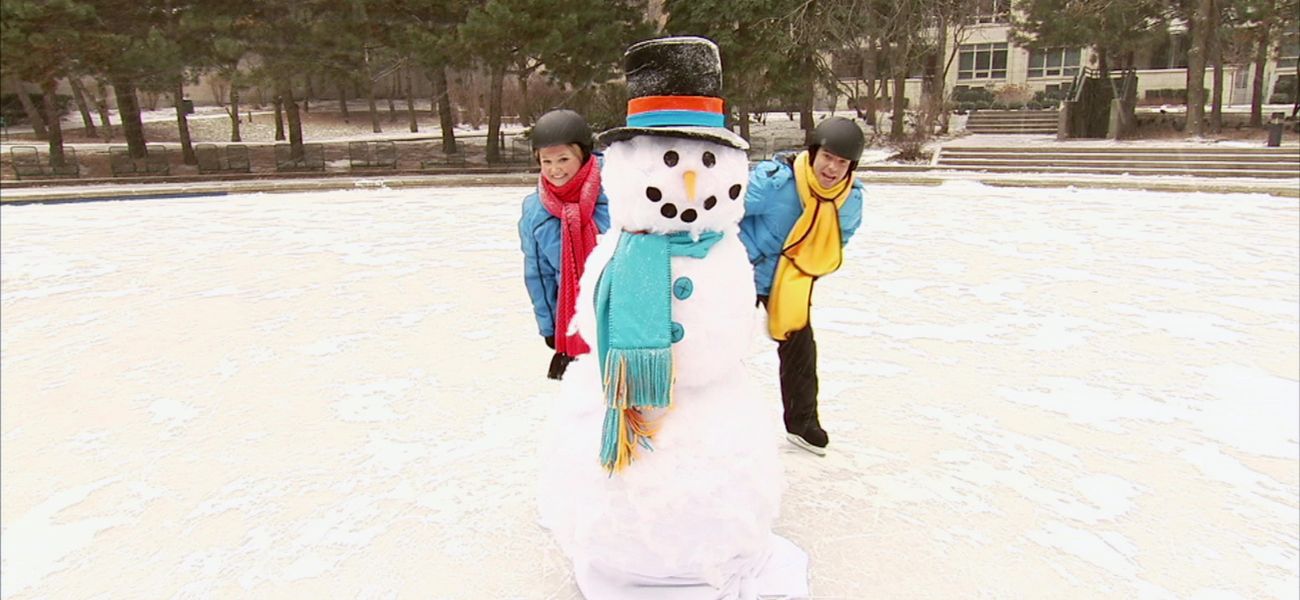 Louis et Josée explorent le sens de l'espace. Ils se placent devant/derrière le bonhomme de neige.