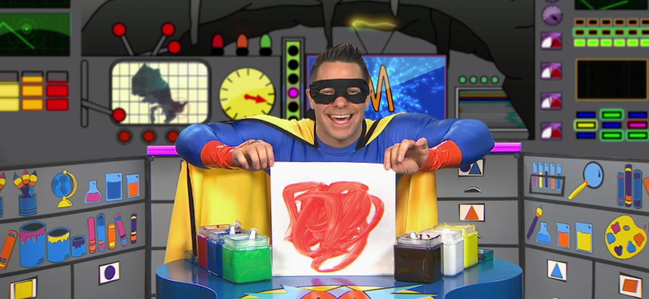 Super Mini mélange deux couleurs pour en créer une nouvelle. Super Mini mélange le jaune et le rouge pour créer du orange.