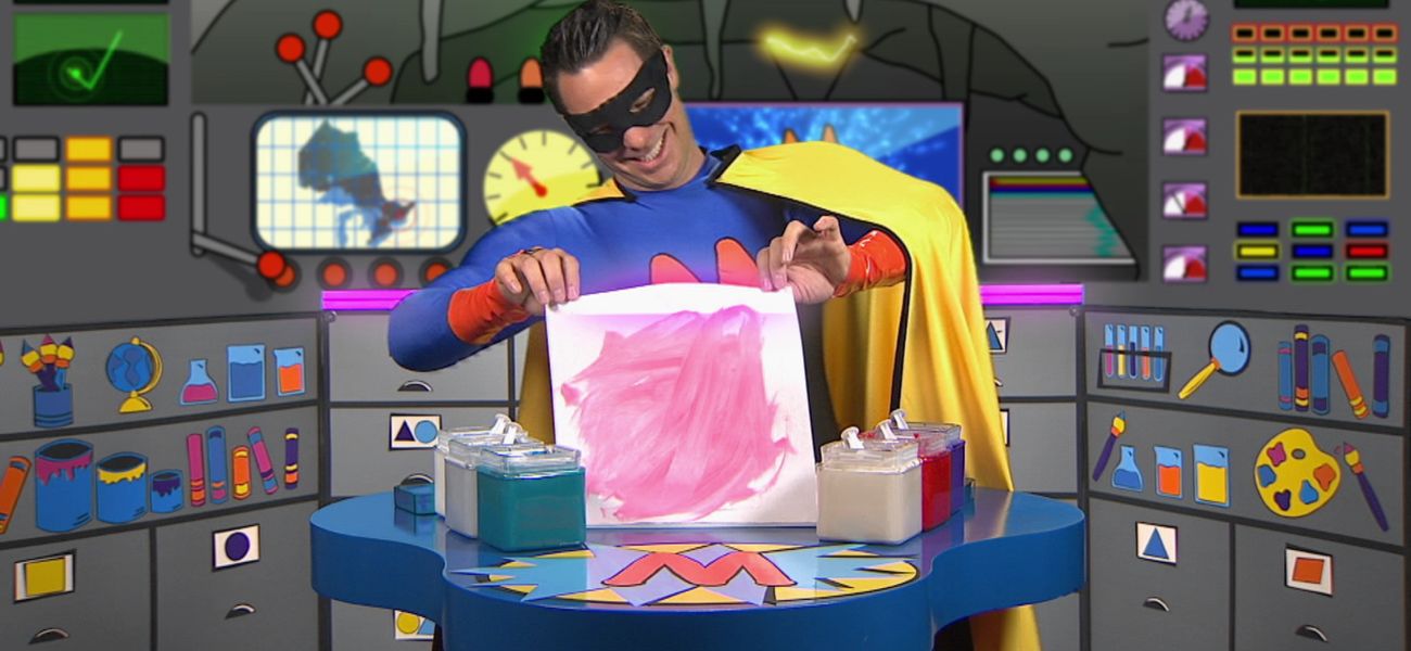 Super Mini mélange deux couleurs pour en créer une nouvelle. Super Mini mélange le blanc et le rouge pour créer du rose.