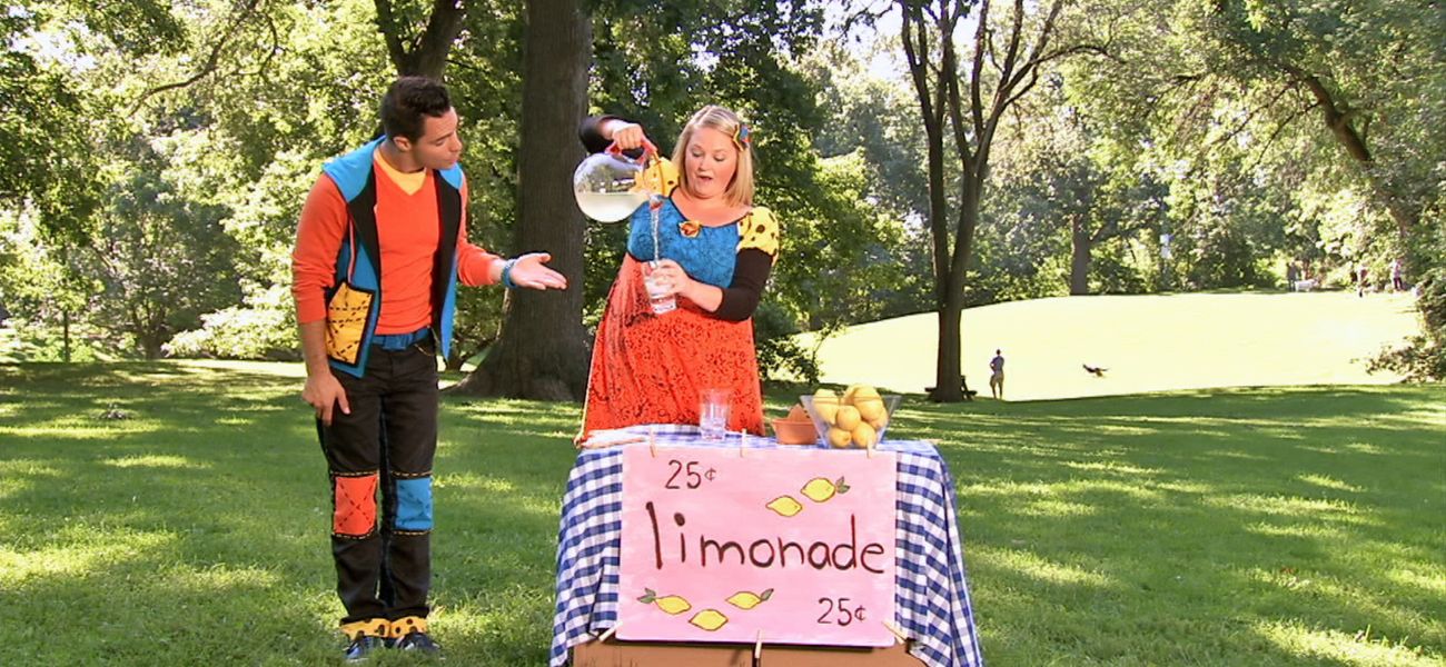 Louis et Josée explorent le sens de l'espace. Ils sont à côté du stand de limonade.