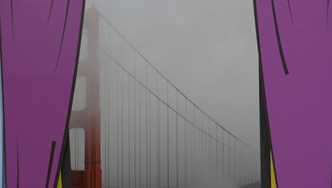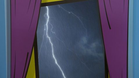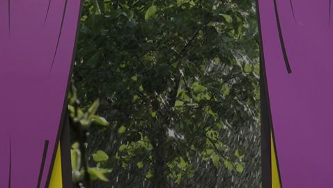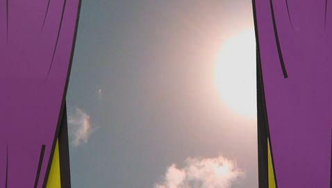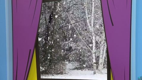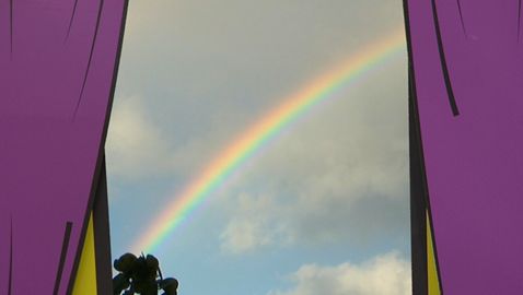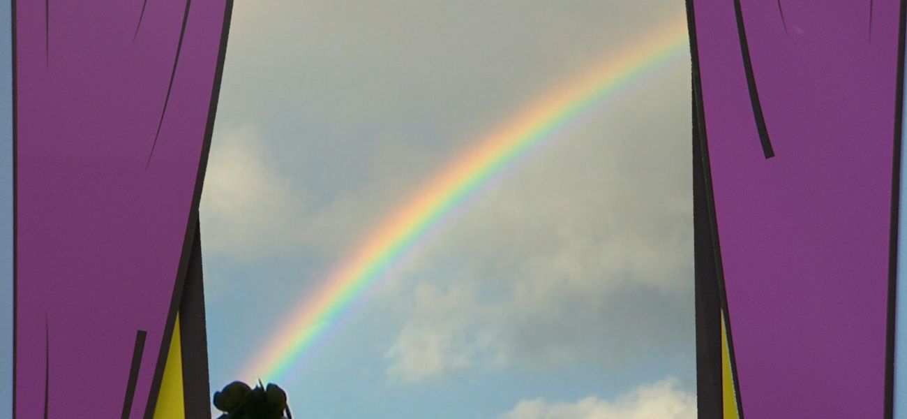 Chaque matin à leur réveil, les animateurs regardent dehors pour voir quel temps il fait. Aujourd'hui, il y a un arc-en-ciel.