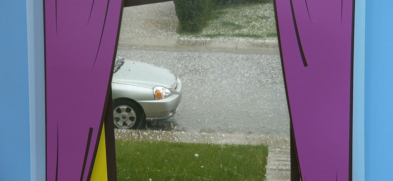 Chaque matin à leur réveil, les animateurs regardent dehors pour voir quel temps il fait. Aujourd'hui, il y a de la grêle.