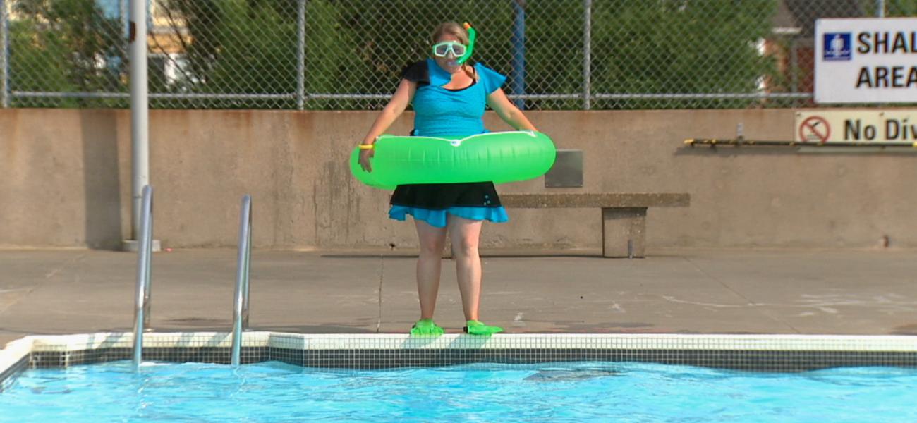 Louis joue dans une piscine. Que fait-il lorsque son ventre gargouille?