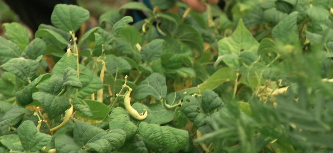Louis mange des fèves jaunes et arrose les tournesols. Josée joue avec ses jouets dans l'eau!
