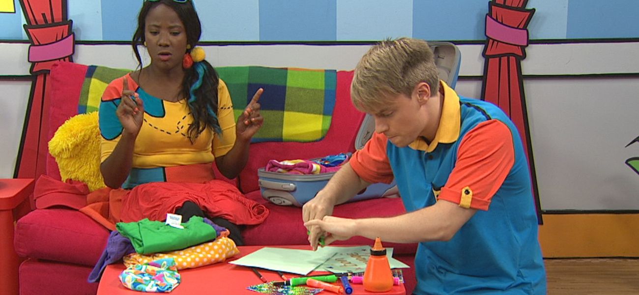 Lexie et Christopher inventent une petite comptine inspirée de leurs actions. L'un commence, dit deux phrases qui riment, et cède ensuite la parole à l'autre qui doit dire deux autres phrases qui riment, mais avec un son différent. Ils s'amusent à faire les gestes qui vont avec la comptine improvisée.