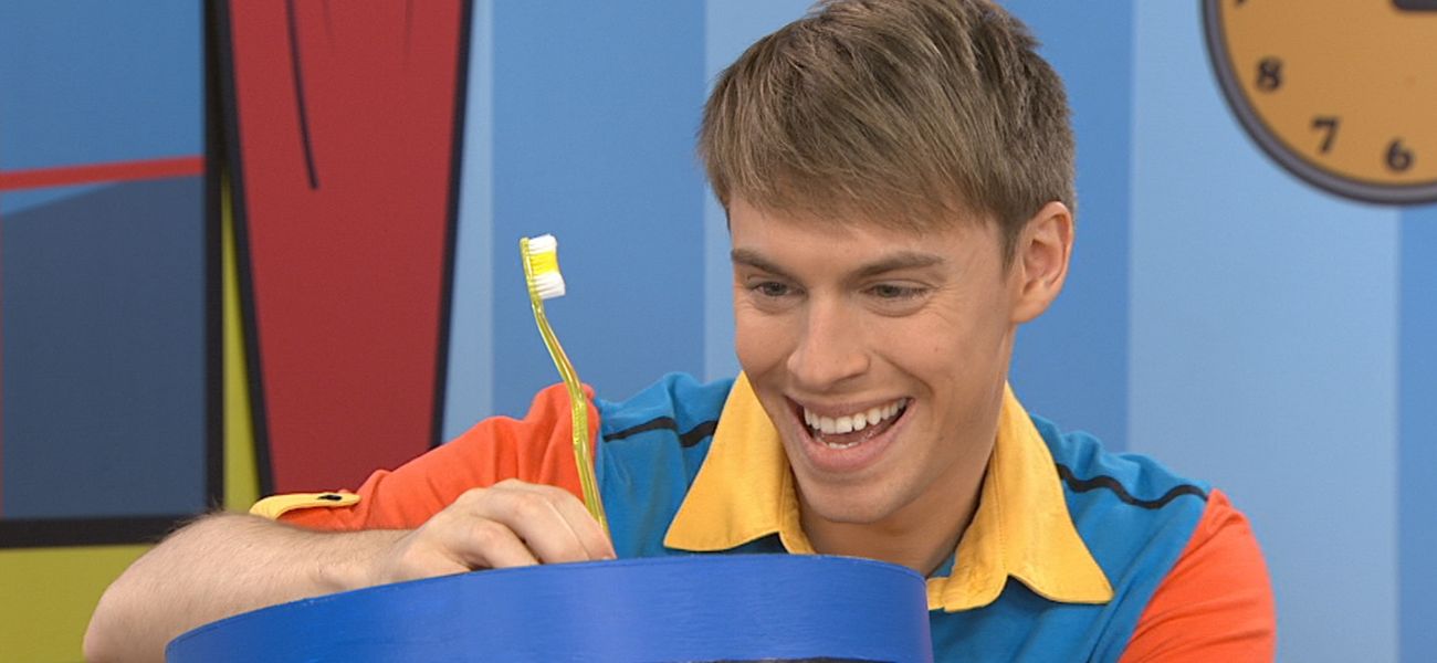 Lexie porte un chapeau avec une surprise dessus. Elle pose des questions à l'enfant pour deviner ce que c'est. Christopher se tient derrière elle et répond avec l'enfant en faisant un signe de la tête! Dans cette capsule : une brosse à dents!