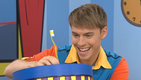 Christopher porte un chapeau avec une surprise dessus. Il pose des questions à l'enfant pour deviner ce que c'est. Lexie se tient derrière lui et répond avec l'enfant en faisant un signe de la tête! Dans cette capsule : un soulier!