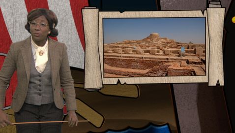 Lexie explique que le verre a été inventé il y a plus de 5000 ans en Mésopotamie. À ses débuts, le verre n'était pas transparent, il était vert ou bleu.