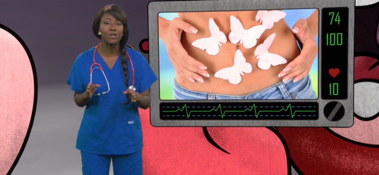 Lexie explique que l'adrénaline libérée dans le corps lorsque celui-ci vit un stress explique les papillons que l'on ressent dans notre ventre.