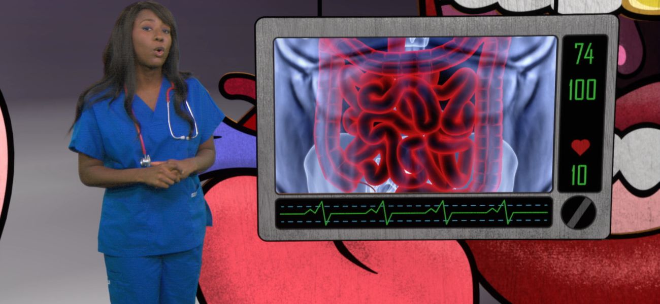 Lexie explique que, malgré son nom, le gros intestin est pus court que l'intestin grêle et mesure environ 1,5 m.