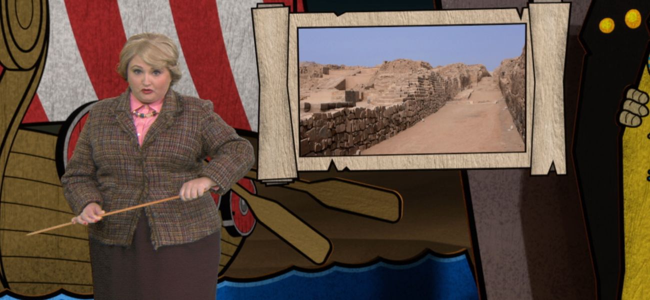 Josée explique que les Incas avaient construit plus de 40 000 kilomètres de routes et se déplaçaient à pied ou à dos d'animaux.