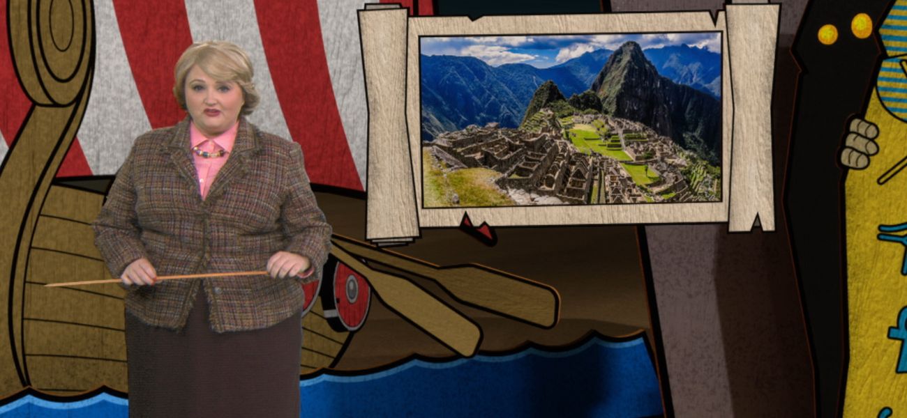 Josée explique que le Machu Picchu est une des seules villes Aztèques à ne pas avoir été détruite par les Espagnols: ils ne l'ont pas trouvée en raison de sa haute altitude.