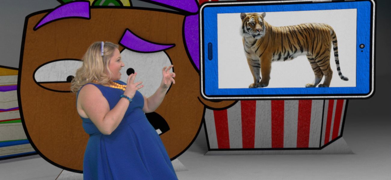 Josée explique que le tigre est le plus gros chat sauvage du monde et décirt certaines de ces caractéristiques physiques.