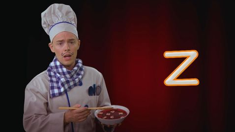 A.... B... C... Chef Alphabet adore l'opéra et les lettres de l'alphabet! Pas étonnant que sur scène, il s'amuse à chanter l'alphabet, encouragé par son fidèle public, des nouilles alphabet, ha ha! Apprends à prononcer la lettre l avec Chef Alphabet.