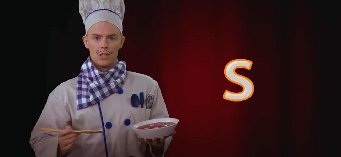 A... B... C... Chef Alphabet adore l'opéra et les lettres de l'alphabet! Pas étonnant que sur scène, il s'amuse à chanter l'alphabet, encouragé par son fidèle public, des nouilles alphabet, ha ha! Apprends à écrire la lettre s minuscule avec Chef Alphabet.